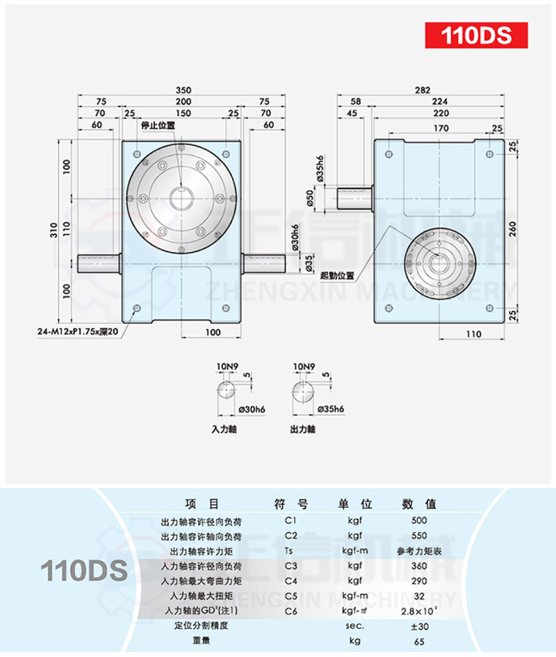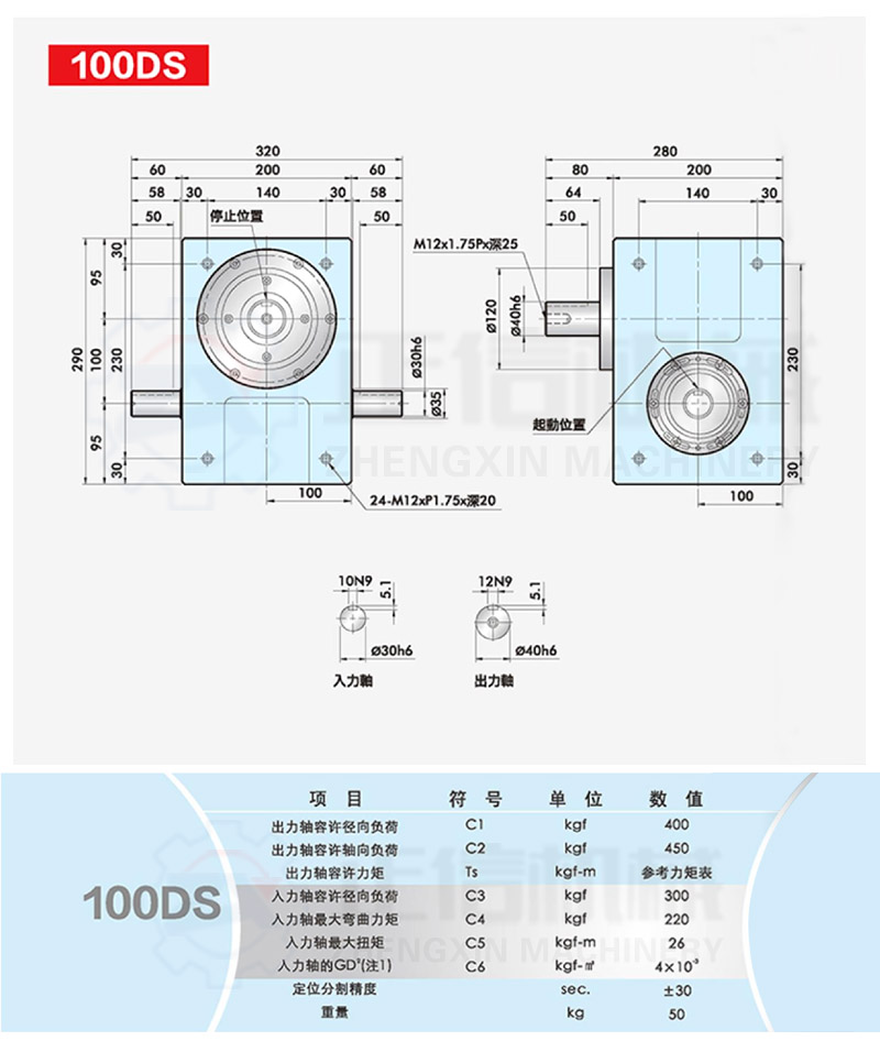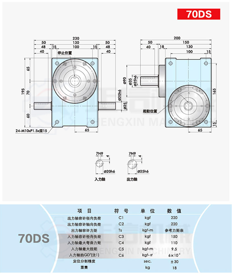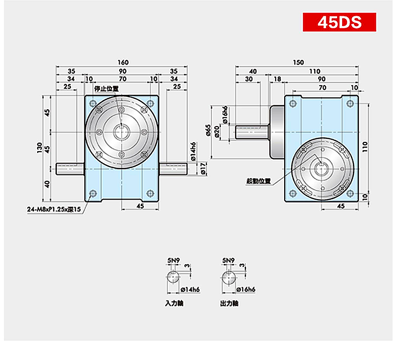 • 此系列機(jī)種為典型傳統(tǒng)式心軸造型,其在分割器上加工安裝配合齒輪、聯(lián)軸器或聯(lián)軸盤(pán),需特別注重孔徑公差(+0.015/-0)、及鍵槽公差(+0.015/-0),其使用場(chǎng)合在輸送帶驅(qū)動(dòng)、齒輪驅(qū)動(dòng)、無(wú)間隙聯(lián)軸器結(jié)合驅(qū)動(dòng)居多。