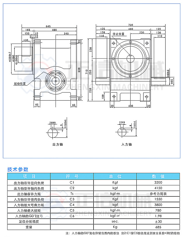 注:入力軸的GD2是在停留范圍內(nèi)的數(shù)值   注2:  C1至C5數(shù)值是達(dá)到安全系數(shù)=2時(shí)的數(shù)值