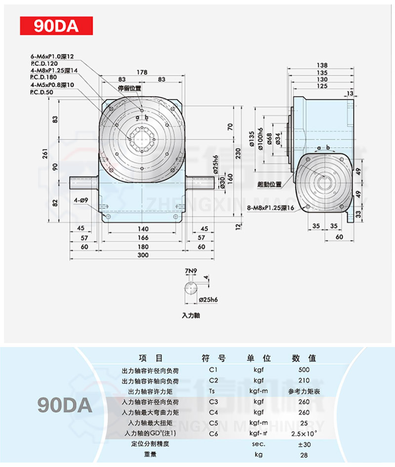 出力軸上的旋轉(zhuǎn)臺(tái)可用作自動(dòng)旋轉(zhuǎn)機(jī)器的中心傳動(dòng)力。
